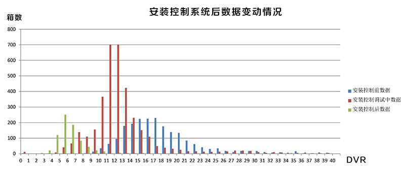 本儀器的控制性能滿足YC147/2010 8.3對卷煙煙箱DVR合格的要求,正常穩定生產情況下合格煙箱(DVR小于10)占總煙箱的85%以上。